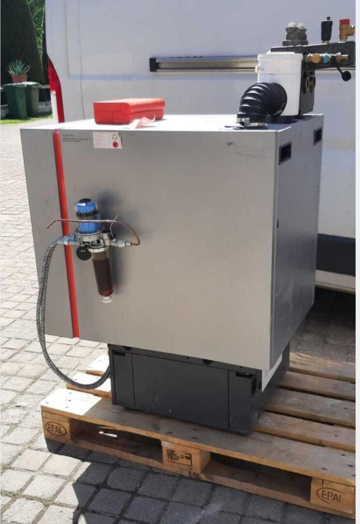 Viessmann Vitoladens 300-C + Vitotronic 200 wraz z oryginalną podstawą i pompą do skroplin. Do tego grupa pompowa Viessmann DIVICON z zaworem trójdrożnym oraz pompą obiegową WILO (rok 2018)