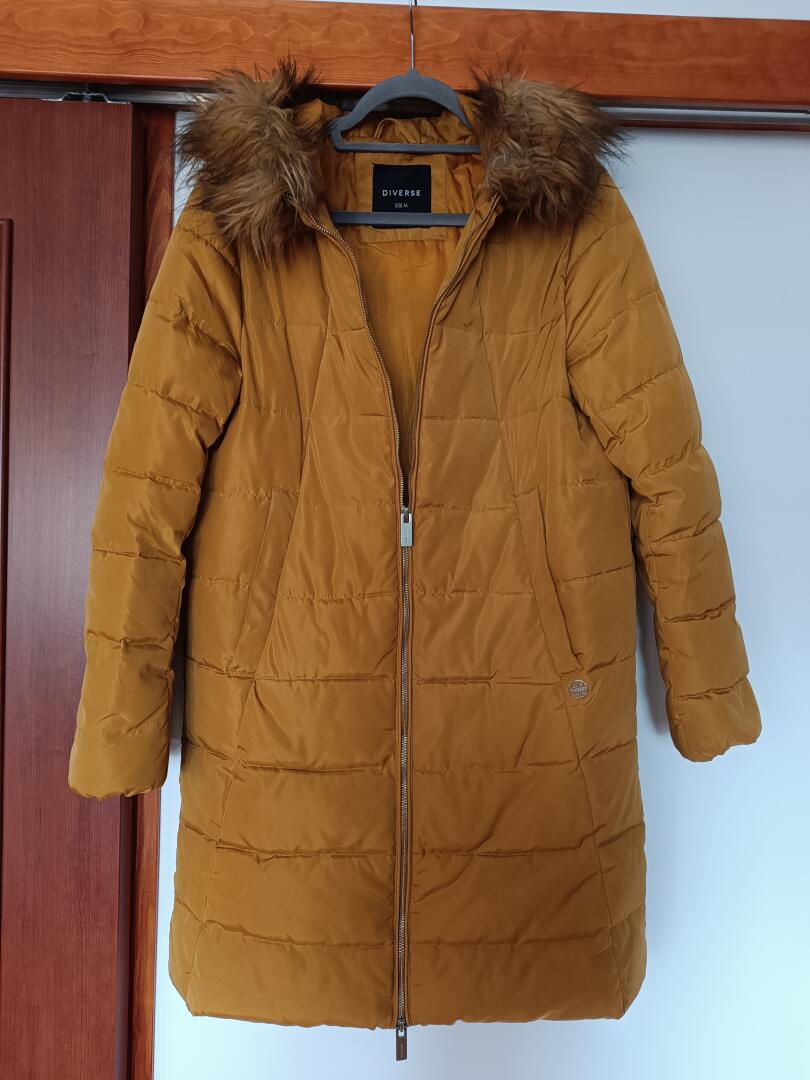 Sprzedam ciepły płaszcz zimowy z kapturem DIVERSE rozmiar M kolor miodowy.