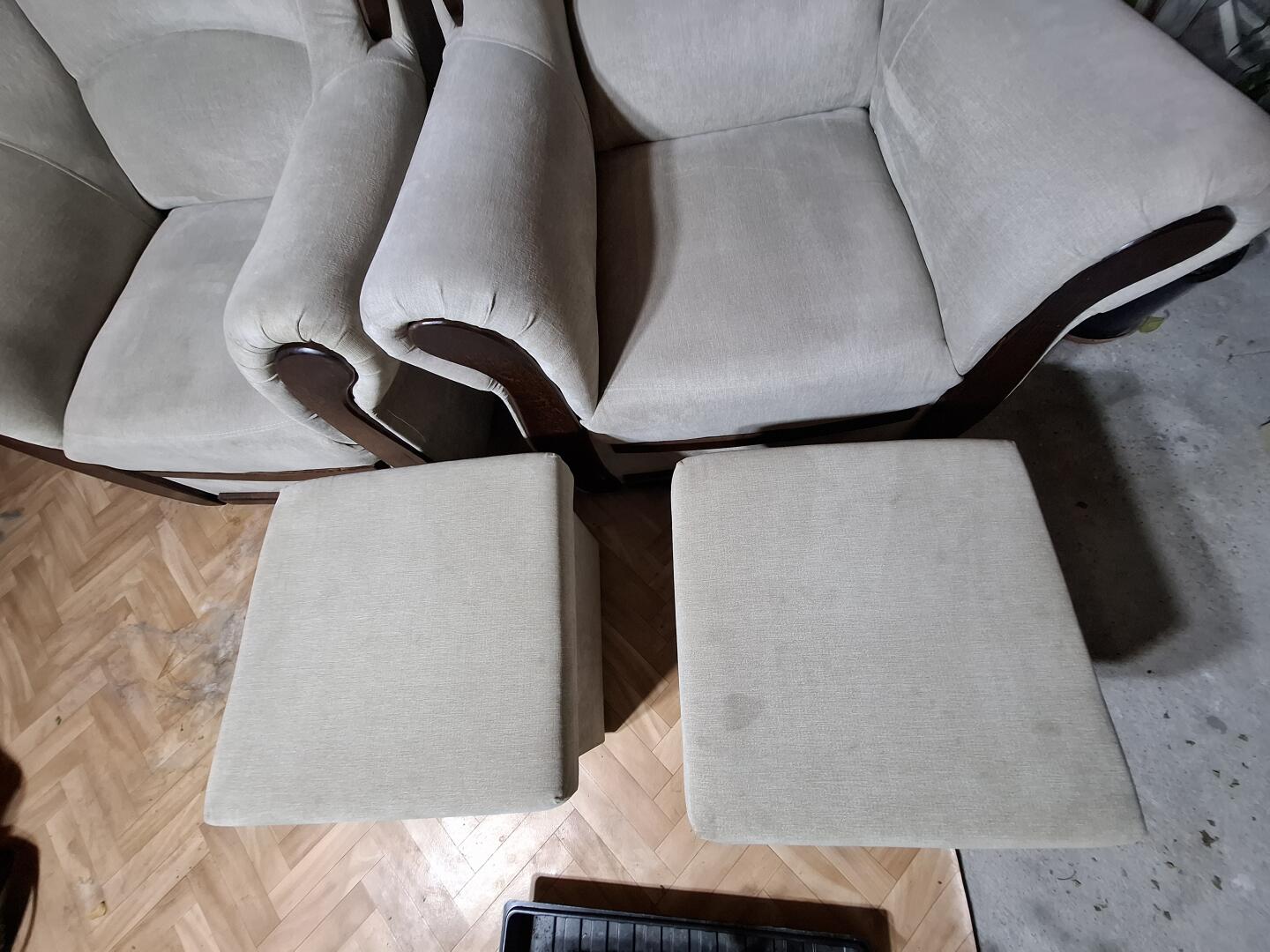 Sprzedam komplet mebli sofa 2 osobowa (140/90) rozkładana ,2 fotele (90/87/45siedzisko) odświeżone i 2 pufy do odświeżenia.Meble w kolorze jasny beż tapicerowane z dodatkami drzewa.Komplet bardzo wygodny wysoki komfort użytkowania.Polecam wiecej informacji udzielę telefonicznie.Cena do uzgodnienia.