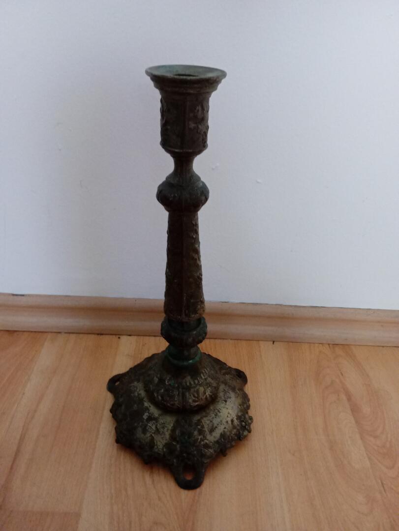 Sprzedam stary świecznik wiek19-nasty mosiężny rzeźbiony Polski sygnatowana
