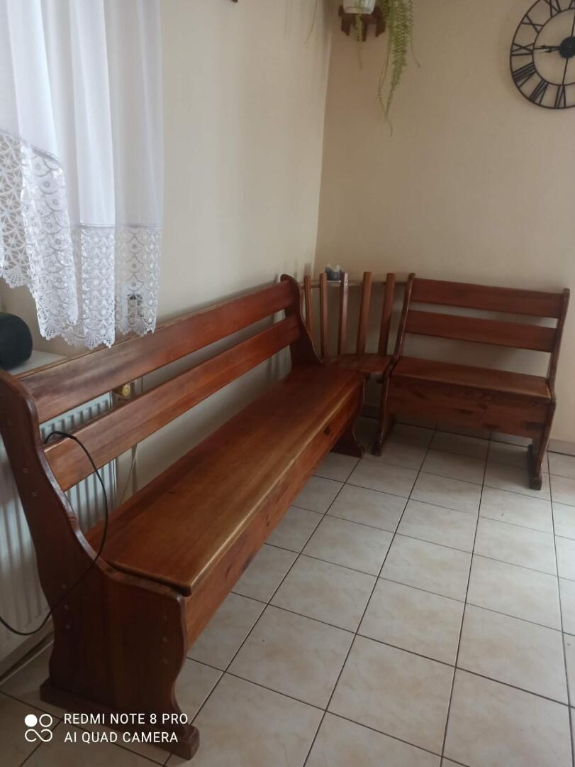 Sprzedam ławę rogowa drewniana i z pojemnikiem w środku. Odbiór okolice Jedwabnego. Cena 600zl